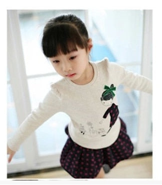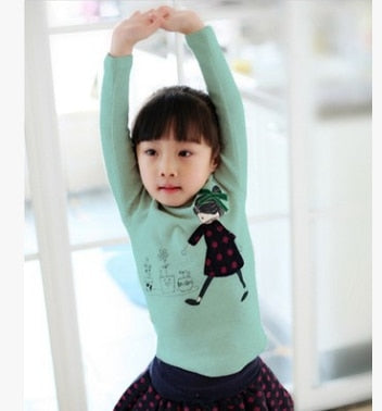 Top New Children's T-shirt Baby Girls Clothing Soft Long Sleeve Tops Spring Autumn 100% Cotton Bow Cartoon Kid's Shirt