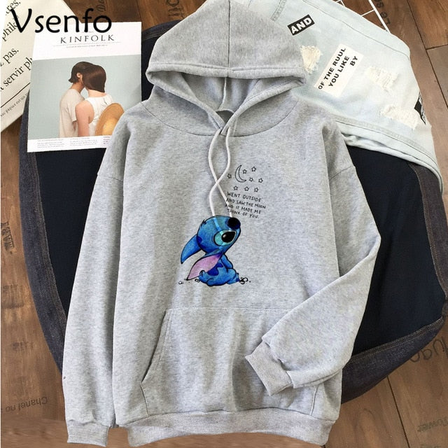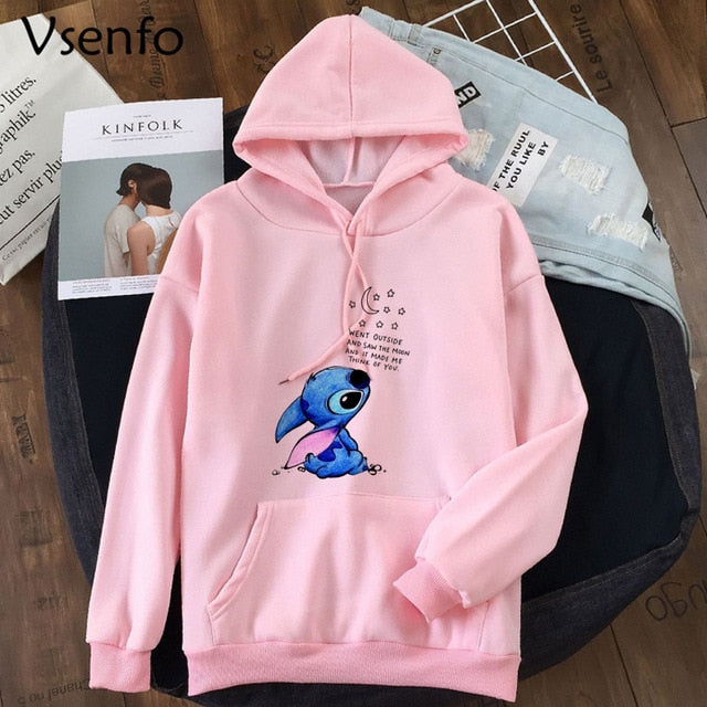 Hoodies Sweatshirt Women Cute Anime Lilo and Stitch Hoodie Ladiy Girl Pullover Harajuku Kpop moletom feminino